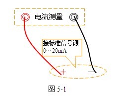 A、将标准的电流信号源仪表与本机所校单元相连,按下电流测量触摸键,如图5-1所示;