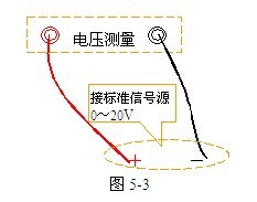 A、将标准的电压信号源仪表与本机所校单元相连,按下电压测量触摸键,如图5-1所示;