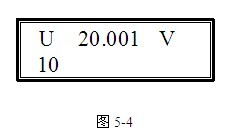 B、将标准信号源调节为输出20V,然后连续按压力校准触摸键4下,此时显示屏第二排显示的当前校准点M应该为10(如果不是,通过多次按电流测量键可切换到10),第一排显示的数值为当前信号需修改的示值,按下电池电压键即把当前信号值记入校准系统中;如图5-4
