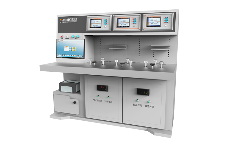 SPMK2033N全自动综合压力校验台运用数字控制技术,是我司研制的三合一全自动智能压力校验台。全程采用智能控制,多量程自动造压,快速输出高精度和高稳定度的压力,是集造压、测试、采集、处理为一体的全自动智能压力控制器校验台。帮助工作人员高效、高质、安全的完成指针式仪表、压力变送器、压力开关等仪表的快速检定、校准工作。利用HART、Profibus功能可以完成HART压力变送器、Profibus变送器的校准工作。